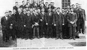 A picture received from Ray Henderson of the Allison Church Brotherhood, taken in 1912. Do you see your ancestors/relations in this photo? My own 2nd-great-grandfather, Albert CREWS, is on the far right (standing on the step)!