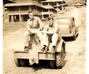 Photo of Roscoe Lindsay on left, Nathaniel Lindsay on the right taken early in World War II. These men were sons of A. R. Lindsay, M.D. who practiced in Birds, Pinkstaff, and Lawrenceville, Illinois and delivered many a Lawrence County person before his death in 1939. Contributed by Robert Gerhart.