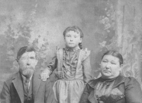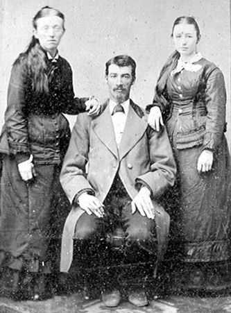 Sarah and James Camp and Jarza Trueblood Petty. Jarza was the wife of Thomas Joseph Petty. This picture is a tintype taken before Dec. 1886 Submitted by Donetta