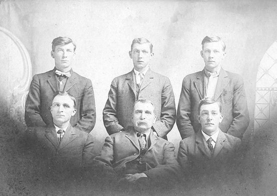 John Wesley Stoltz and his five sons, French Stoltz (back row far left), Frank, Charles Mack, John Logan and Chester. The boys were g-g-grandsons of Joseph and Elizabeth Petty on both sides. John Wesley is in the front row center. Another son, Isacc, died at age 2 years. Except for Frank, it is unknown which son is which Submitted by Donetta |
